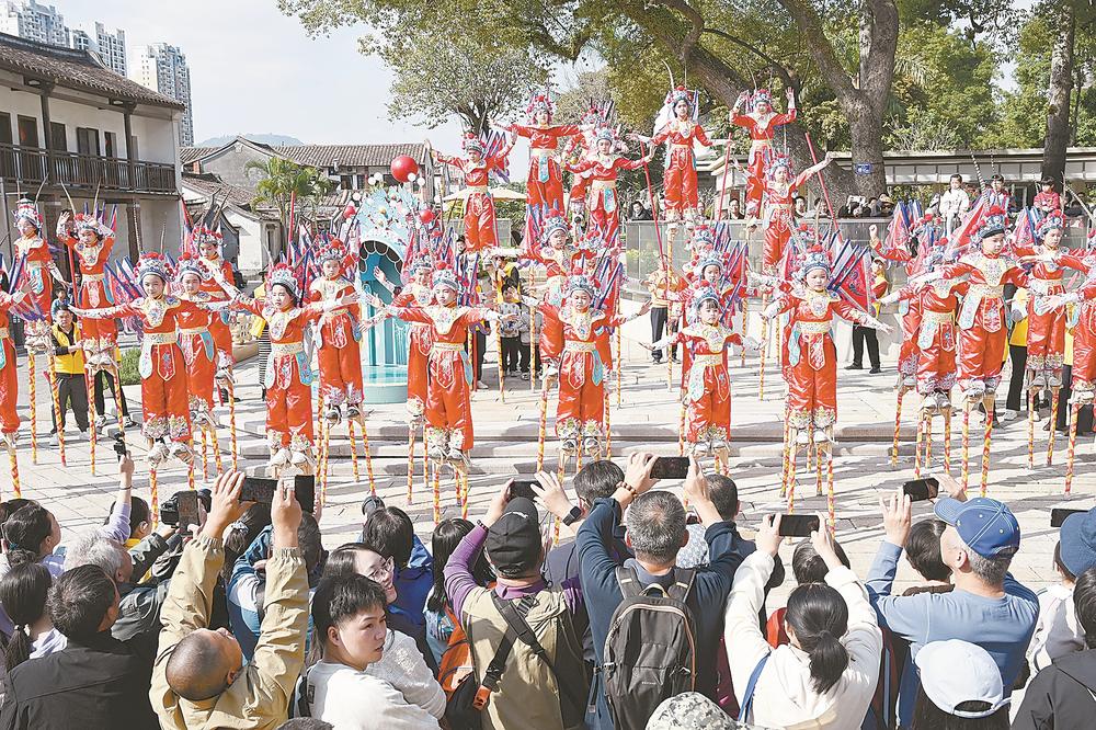 “认识非遗,体验非遗乐趣。”石亭(塘边)少儿高跷队除了向游客表演非遗踩高跷技艺外,还在古城内开辟了一个体验站。该体验站除了在元旦、“五一”等重大节日开放外,还坚持周末常态化免费开放,由专业传承人现场指导,让市民游客既能观赏“凌空漫步”的技艺,也能亲身体验“步步高升”的乐趣。“体验站不仅成为市民休闲打卡的好去处,更成为外地游客探寻漳州文化魅力的热门打卡点。”石亭街道党委宣传委员陈金发说。