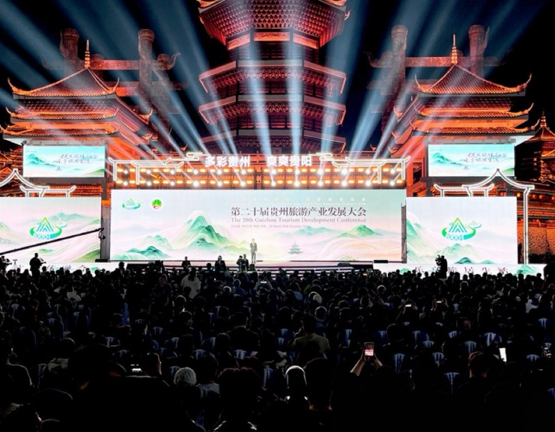 央视网消息(记者 汪汀)3月30日晚,第二十届贵州旅游产业发展大会在贵阳市多彩贵州城正式拉开帷幕。本届旅发大会以“促文旅体融合·乐享旅居生活”为主题,构建起“1+4+N”活动体系——即1场开幕式、4个专项领域主体活动和多个文旅体配套体验活动,全方位、多角度展现贵州文旅体产业的新产品、新业态、新玩法,以及贵州旅居生活的新生活、新服务、新体验,助力打造“多彩贵州”文旅新品牌。